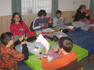 Gut angekommen war auch das Malspiel „Montagsmaler“. Über einen Tageslichtprojektor malten die Kinder Begriffe an die Wand,
